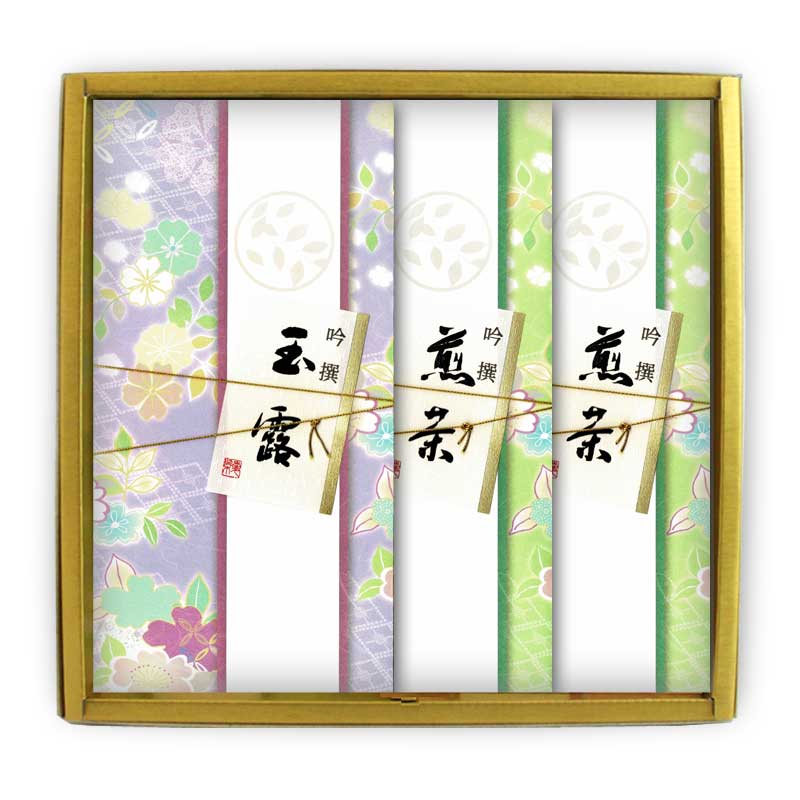 人気のかりがね茶、八女茶、知覧茶、八女玉露などを詰め合わせた、いり江茶舗の特選ギフトセットです。箱・包装費込み。ご希望に応じて、慶事・仏事用の熨斗(のし)や手提げ袋を無料でお付けいたします。メッセージカードや、法事用のご挨拶状(はがき・奉書)も対応可能ですので、お気軽にご相談ください。