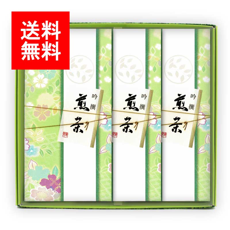 新茶ギフト#44 細あららぎ包み セット(特上八女茶 特上知覧茶 特上かぶせ茶(玉露)) 100g×3