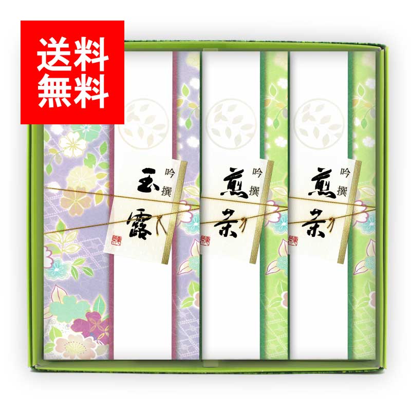 新茶ギフト#45 細あららぎ包み セット(特上玉露 特上八女茶 特上知覧茶) 100g×3