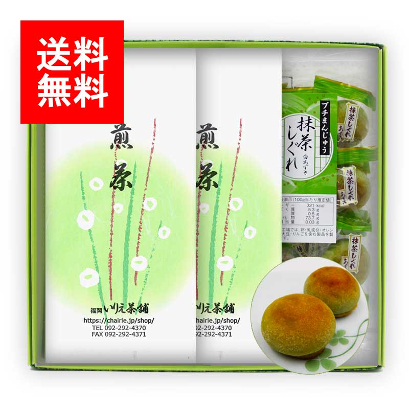 新茶ギフト#68 特上八女茶 特上知覧茶 プチまんじゅう[抹茶しぐれ] セット 100g×2 メール