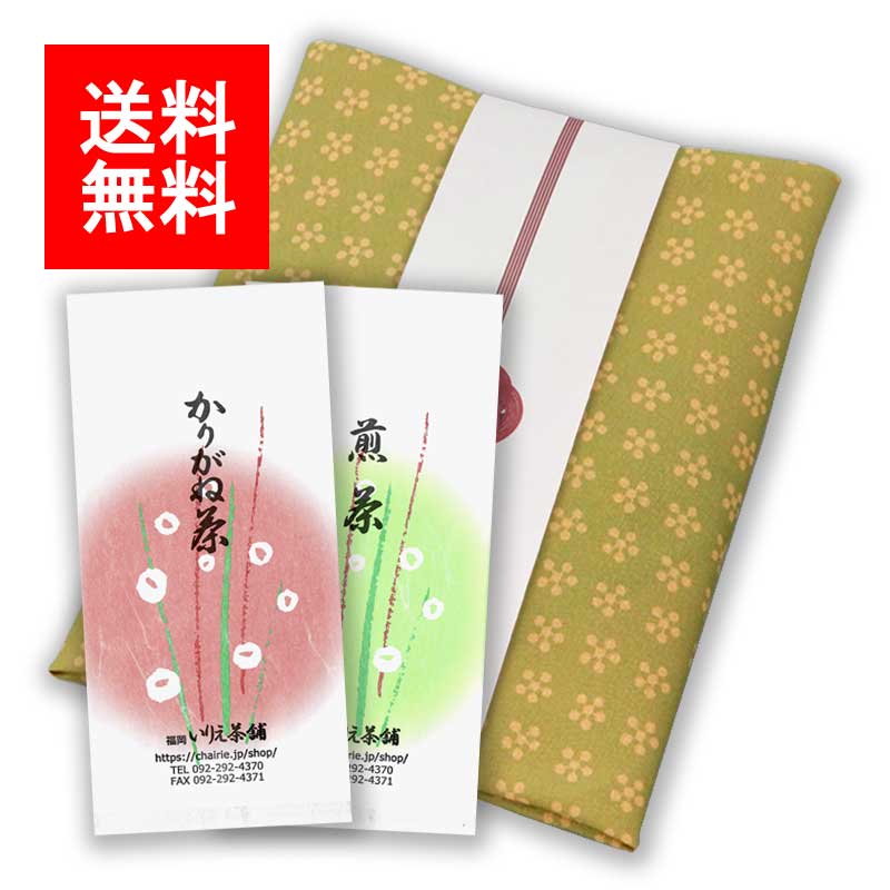 新茶ギフト#163 利休梅風呂敷 2袋入包み(上かりがね茶 特上八女茶) 90g 100g メール便L1163
