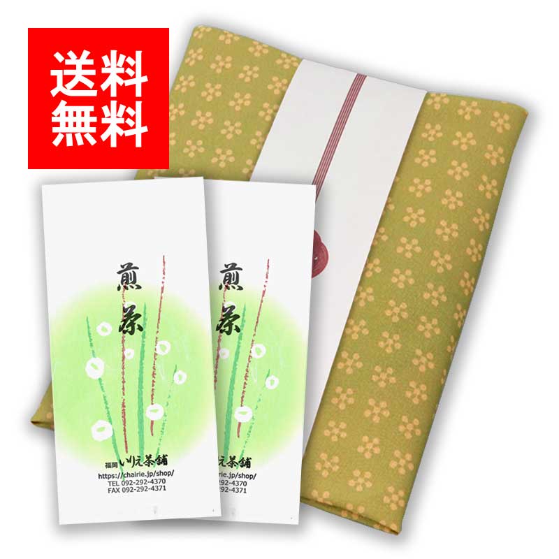 新茶ギフト#164 利休梅風呂敷 2袋入包み(特上八女茶 特上知覧茶) 100g×2 メール便L1164