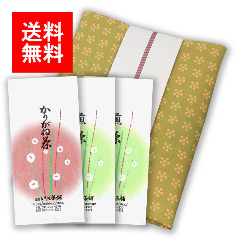 新茶ギフト#166 利休梅風呂敷 3袋入包み(上かりがね茶 特上八女茶 特上知覧茶) 90g 100g×2 メール便L1166