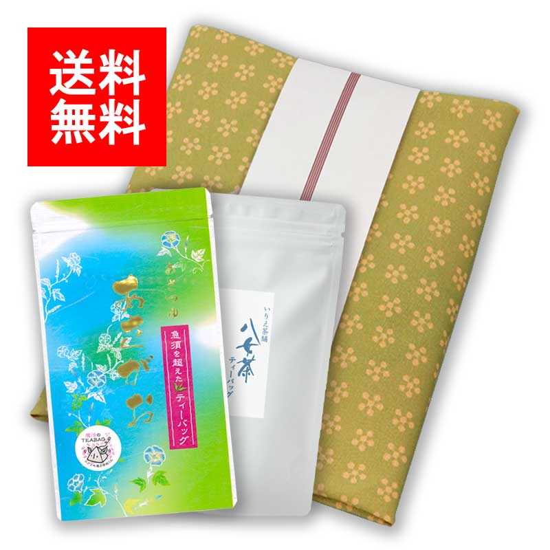 夏ギフト#96 利休梅風呂敷 ティーバッグ2袋入包み (あさつゆ[あさがお] 八女茶) 5g×16p 5g×18p メール便L3096