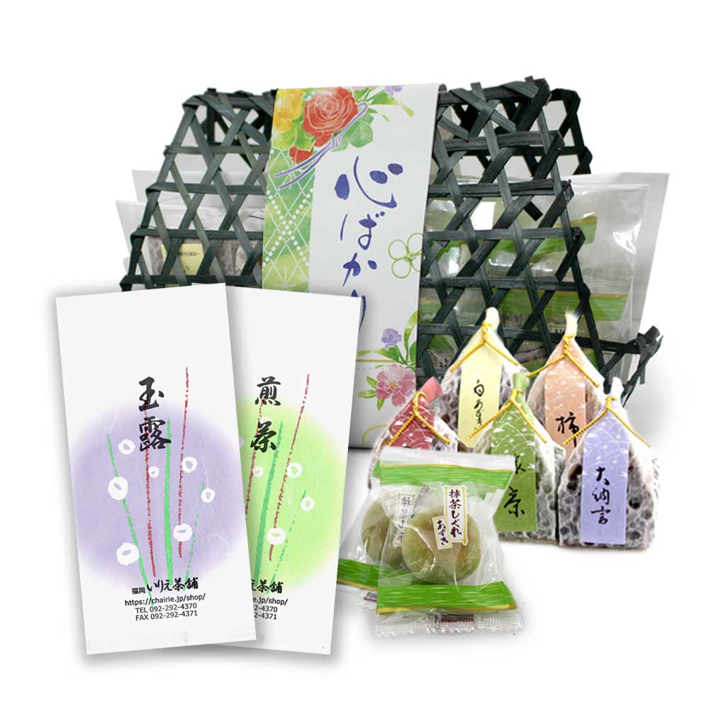 心ばかりの贈り物に。竹かご入り 日本茶と和菓子の詰合せギフト