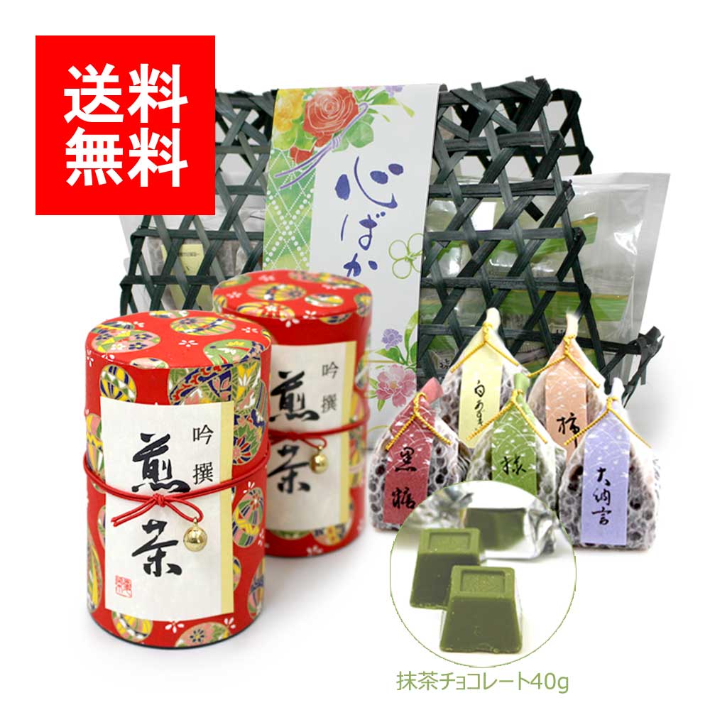 心ばかりの贈り物に。竹かご入り 日本茶と和菓子の詰合せギフト