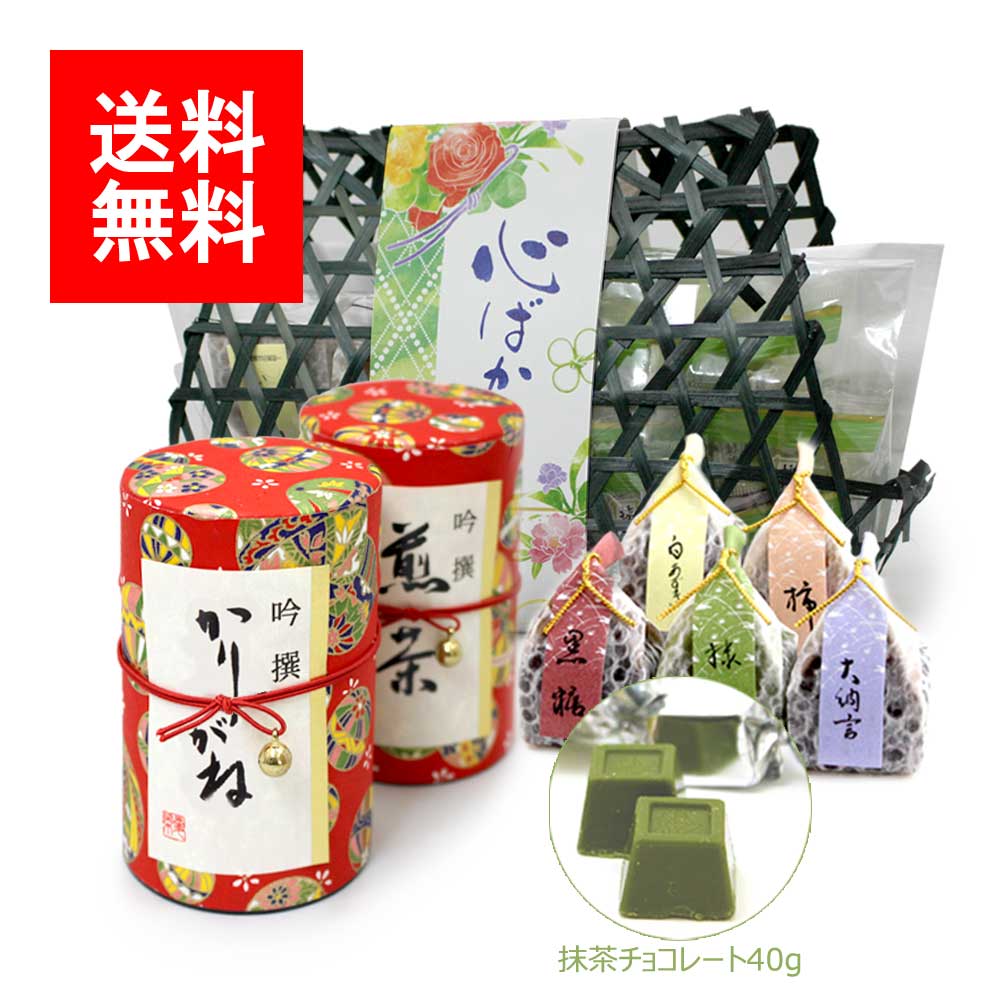 心ばかりの贈り物に。竹かご入り 日本茶と和菓子の詰合せギフト